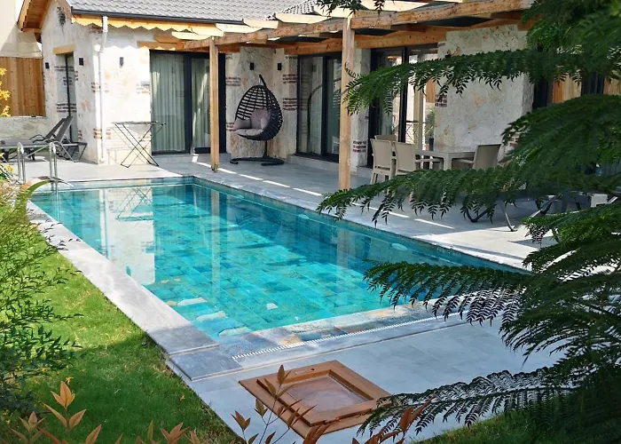 Set in the breathtaking landscape of Mugla, Fethiye Stone Daylight Villa 1 offers a tranquil escape that beautifully blends luxury and natural beauty. Just 60 km from Dalaman Airport, this exquisite villa provides easy access for travelers seeking a peaceful retreat. Surrounded by stunning vistas of the turquoise Mediterranean and rugged mountains, guests are enveloped in an aura of serene tranquility.